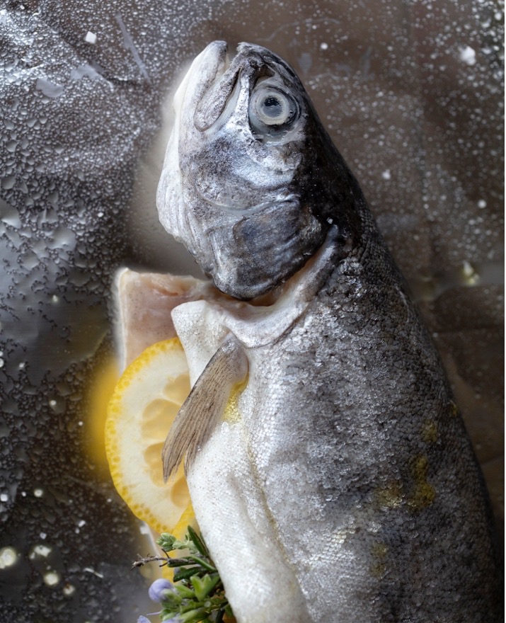 - Lay each trout on the center of a piece of aluminum foil that is slightly longer and wider than the fish.