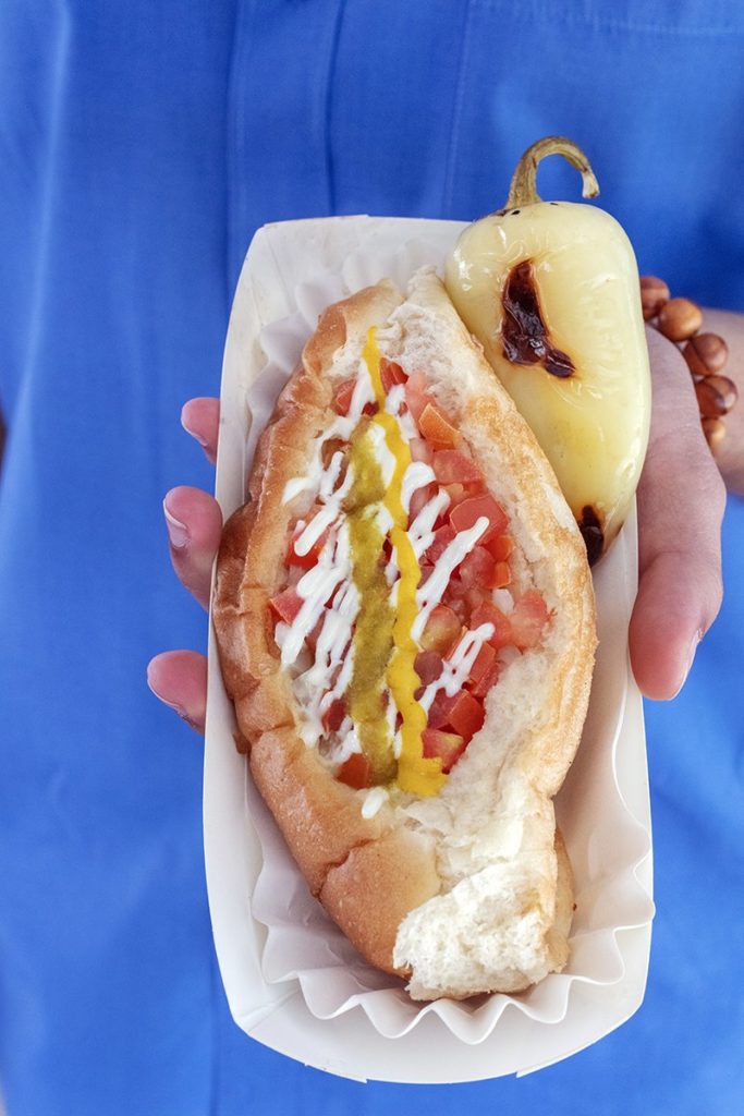- Serve with the grilled Güero chile on the side. I recommend biting off the end of the chile and then squeezing the juice out on top of the hot dog.